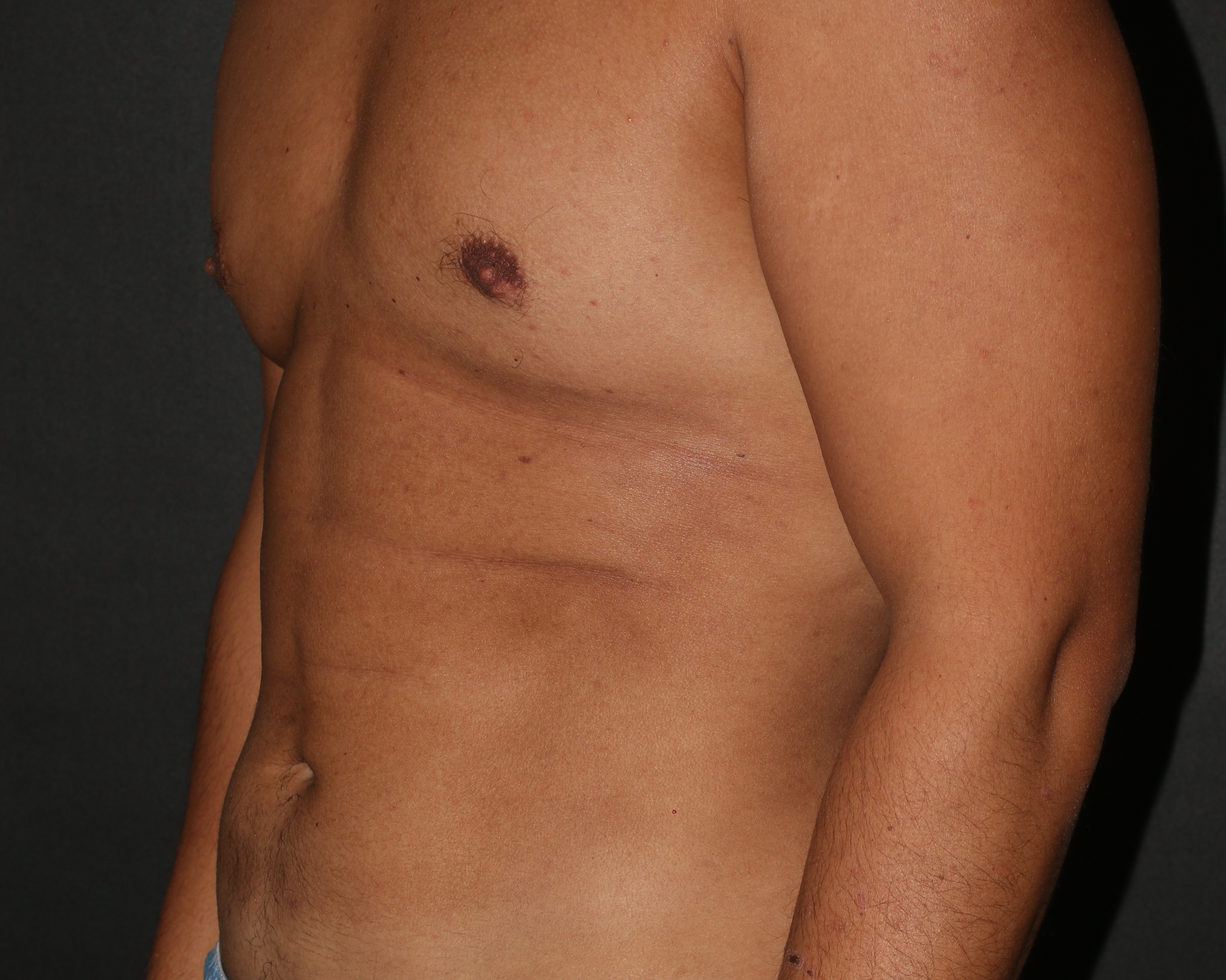 (#35737) Gynecomastia with excision & liposuction to breasts=200cc. Lipo to Hips=1,900cc. Lipo to Abdomen=1,150ccc. Height: 5’9″ Weight: 185 lbs.